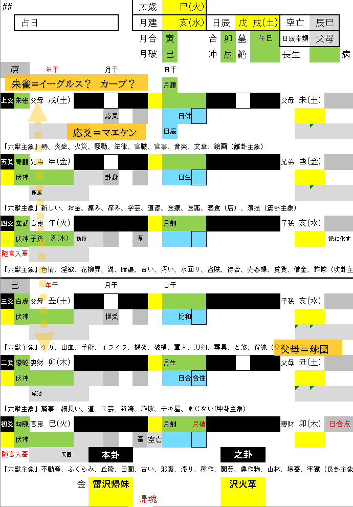 世爻(せこう)だからセ・リーグ…というのはこじつけですが、世爻は房主でもあり、房主としてはマエケンの広島復帰を望んでいますが、2爻は父母を帯びる日辰から合されて合住しています。