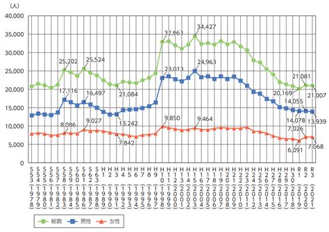 厚生労働省の統計は一環として過去50年間、2万人を下回りません。