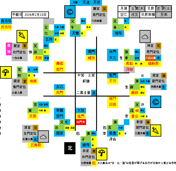 易照の方位予報 2月23日予報