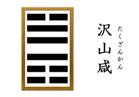 下卦の艮は男性性器の象徴であり、上卦の兌は女性器の象徴。つまり男女が交わり「感応」しあっているというのがこの卦の象(かたち)です。