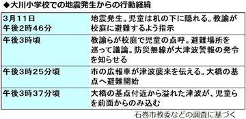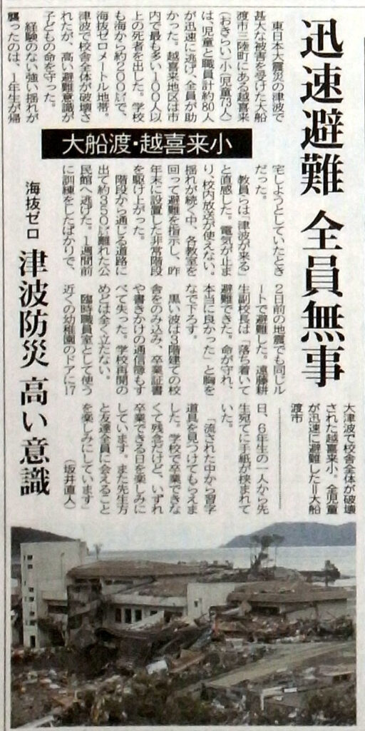 一方で児童ら70人の犠牲者を出した大川小学校では、避難先をめぐって40分間教諭らが議論を交わしていたことが明暗を分けた結果です。