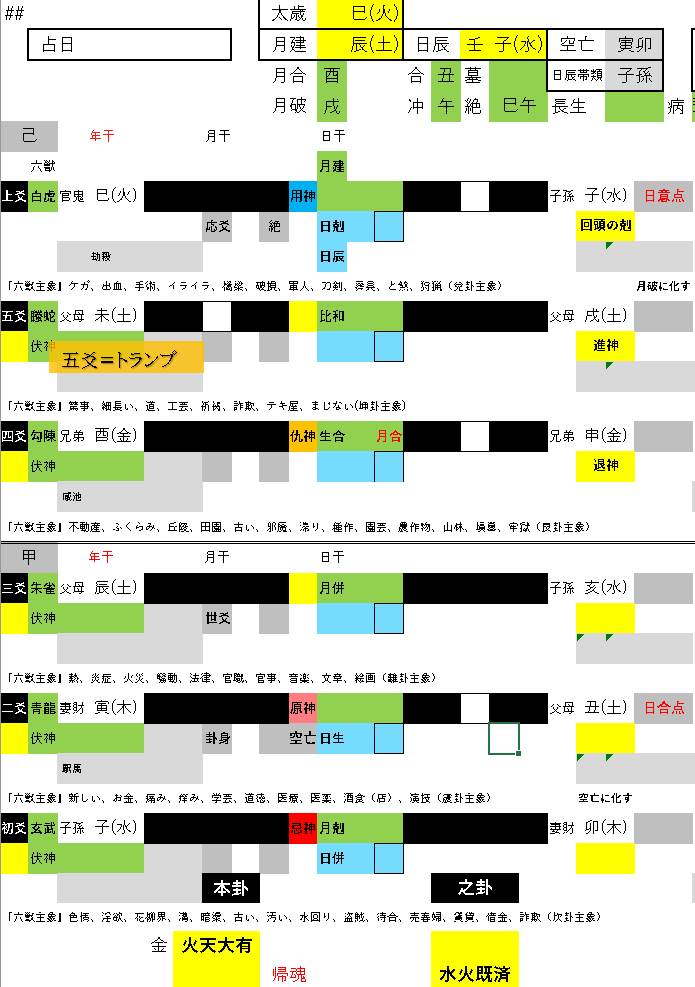 本卦「火天大有」、之卦「水火既済」を得ました。