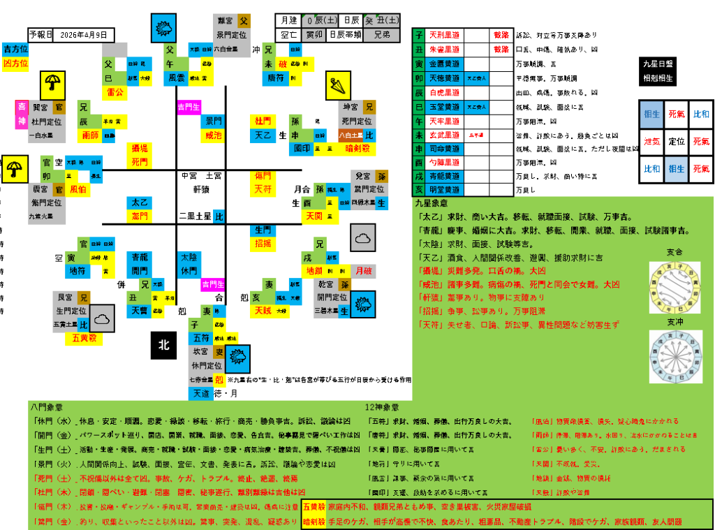 9日注意本命星は、七赤金星、八白土星です。(お出かけの有無に関わらず、凶事発生しやすい一日となります)