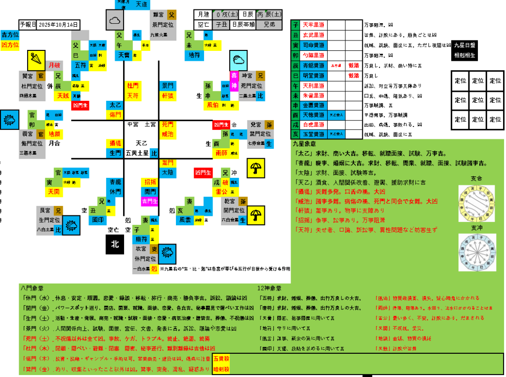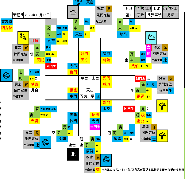 14日注意本命星は、五黄中宮日の為大きく崩れる本命星はありません。