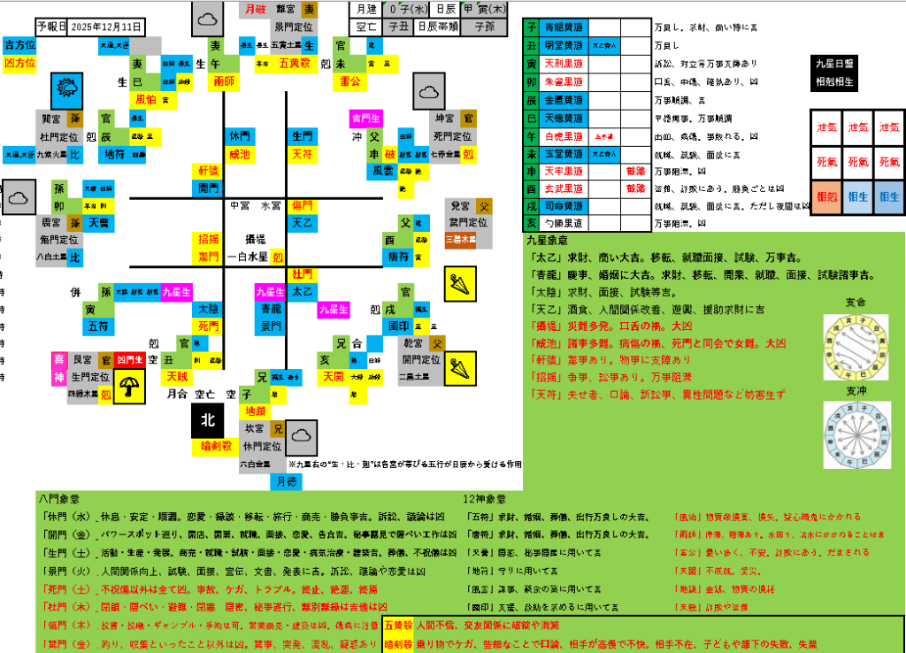 吉凶半々方位(生門旺相・日破同会) お出かけした場合の方位事象…