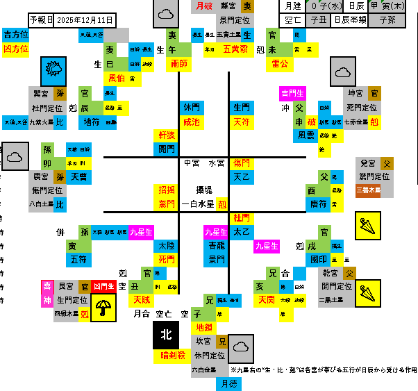 氣學・日盤及び時盤では、子刻の南方、丑刻の南西、辰刻の南西に凶煞重なります。