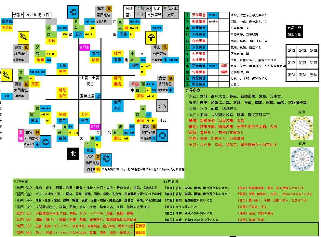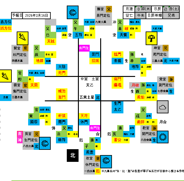 易照の方位予報 3月16日予報