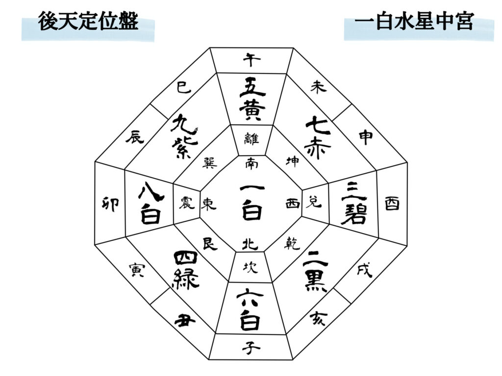 氣学では一白水星は中宮と言って年盤の中央に位置します。この位置は結果、結末を意味し、これまでの行為、取り組みやなどに一定の成果を得たり、区切りがつく位置です