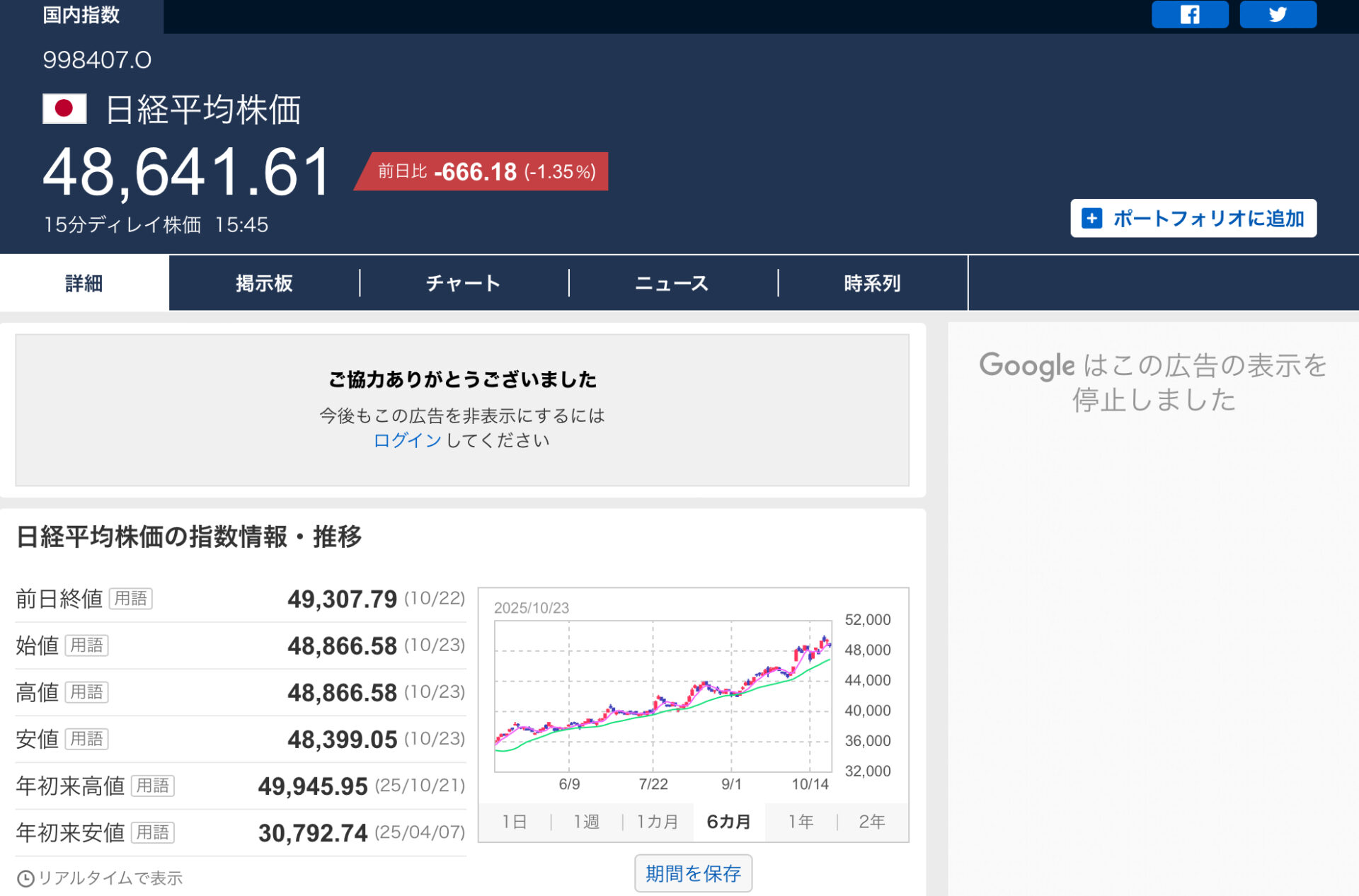 昨日は前日比「666.18円」安の48641円まで下落したようです。
