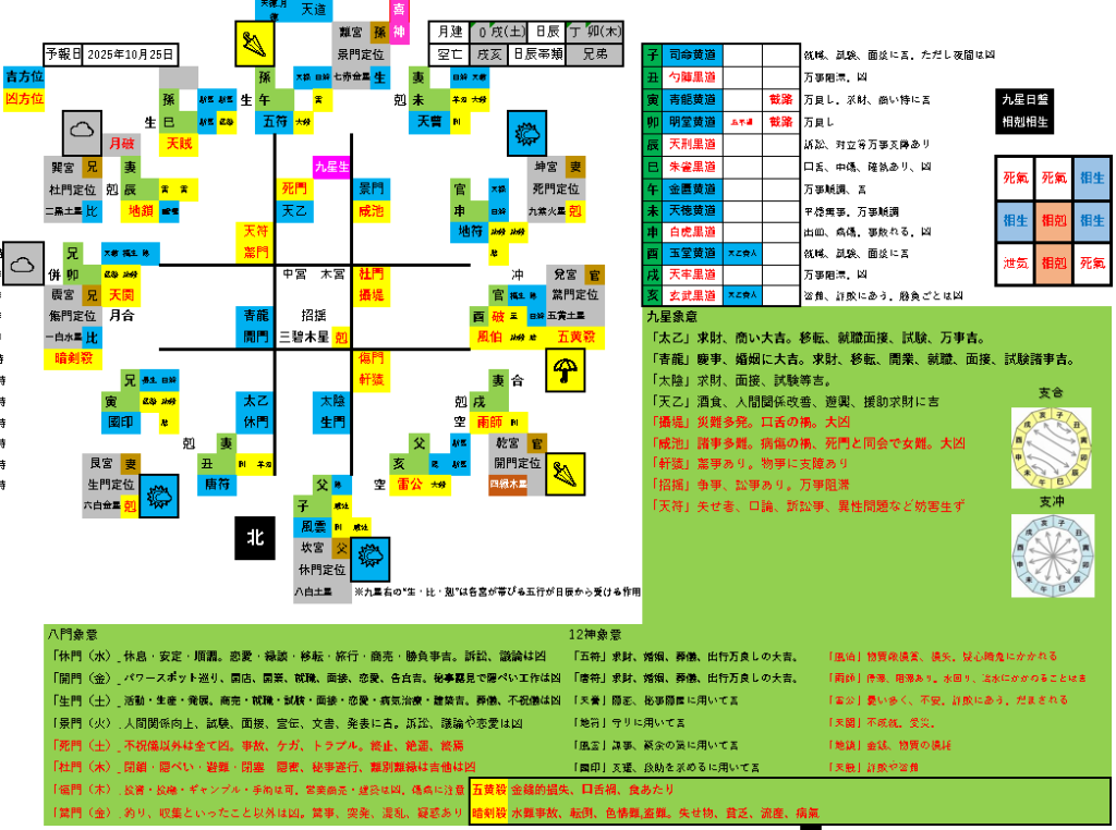 25日注意本命星は、三碧木星、五黄土星、六白金星、九紫火星です。(お出かけの有無に関わらず驚事発生しやすい一日となります)