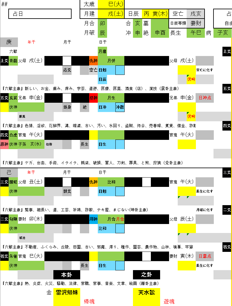 本卦「雷沢帰妹」、之卦は「天水訟」を得ました。