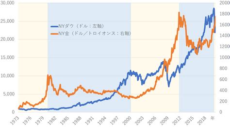 従って、経済が堅調であるときは株価が高騰する一方で金価格は下落する。逆に景況が厳しい時は資産保全を目的とした金にお金が集まり金相場は上昇します。