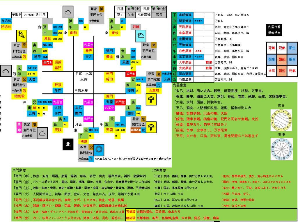大吉方位(開門旺相・太乙同会) お出かけした場合の方位事象…